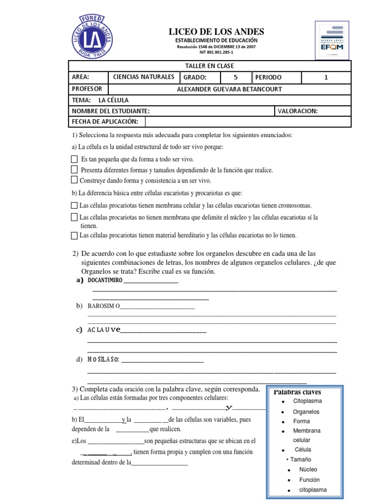 3) Completa cada oración con la palabra clave, según corresponda. Palabras claves