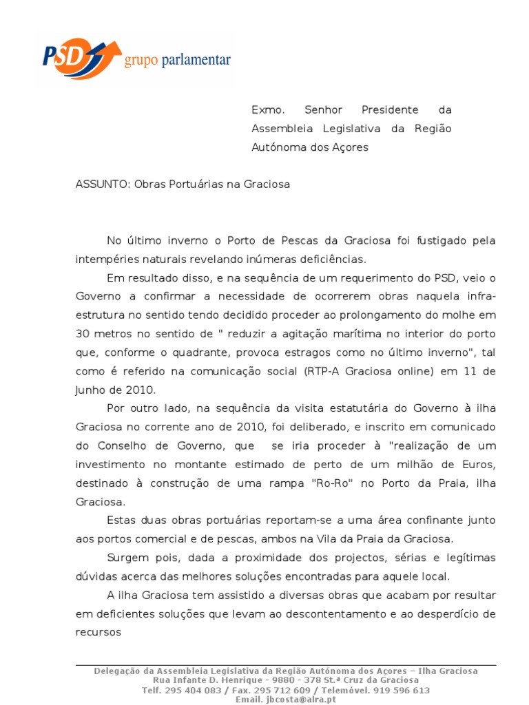 aos portos comercial e de pescas, ambos na Vila da Praia da Graciosa.