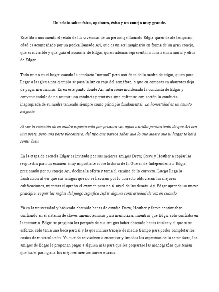 Este libro nos cuenta el relato de las vivencias de un personaje llamado Edgar quien desde temprana