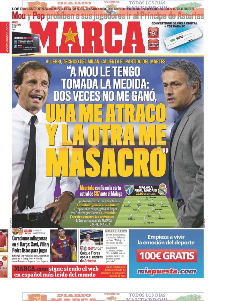Mow-in 110 tlene mas eomplicaclones que el para preparar esre due!o, "EJ; UJ] partido que rodos quieran jugar. es el mas rnedlatlco, CO" m as CObert ura, corn I1l 101; mejores jugaclonls., seguro que es 10 qua nos va a motlvar mas. Param i, co rno ernrenador del Malaga. noes nada diffd!' Es el partido mas raeil para motivar, pero para Mourin 110 sera muy d i[;61, o'as que contra el Milan. por ejernpto". asevero.