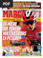 EI ciclismo parecia sal vade gracias a lin supcrcampeon de raza, solo comparable con BI gran Miguel. A pesar de los problemas del Astana, el madrileno conslguio la triple corona de Tour. Vuelta y Giro; y dad a su juventud augura rnuc hos mas triunfos. Sin embargo, el palo nos vuelve a caer ell la (Ollbez.fl cuando meno~ nos 10 espeni.b!lITlos. Ha dedarado Merckl< que Ie g..,staria pader riarse de Albcrto. Yo cmo qu.c 'ados ,deberianlOS ronliar en oil. en que no 1m sido capal. de ar:desgnrse a co meter ese error wando sabi"- que Ie cstabao '" pe m ndo tan el palo det'"fu; de la PUeJ13. Porque s I cae Co nt:ador. t·endreOlOS que deci,' adios a un8 pMe import.al1~e de nues· l'rn histoda personal y 00 leet;va, n un depone que eo pa rte de nuestr3 vi da.