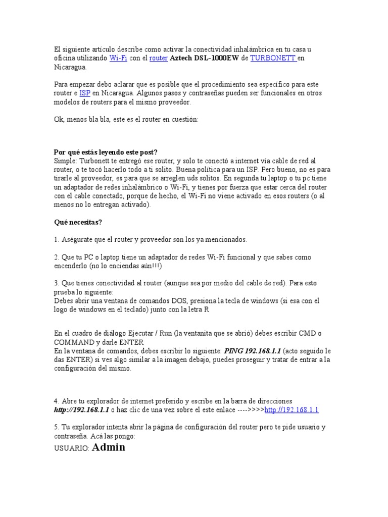 router e ISP en Nicaragua. Algunos pasos y contraseñas pueden ser funcionales en otros