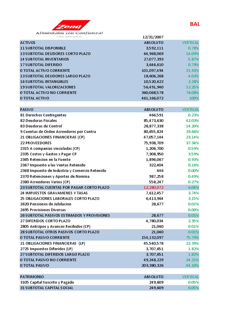 BALANCE GENERAL SECTOR ALIMENTICIO (CAR