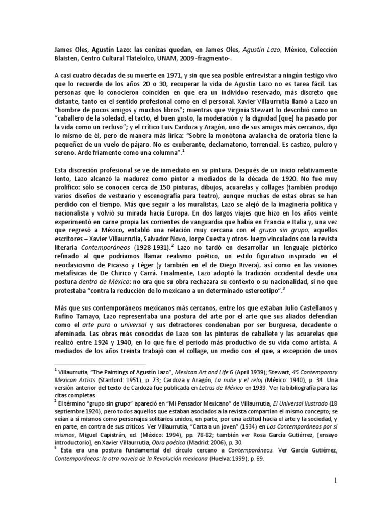 James Oles, Agustín Lazo: las cenizas quedan, en James Oles, Agustín Lazo, México, Colección