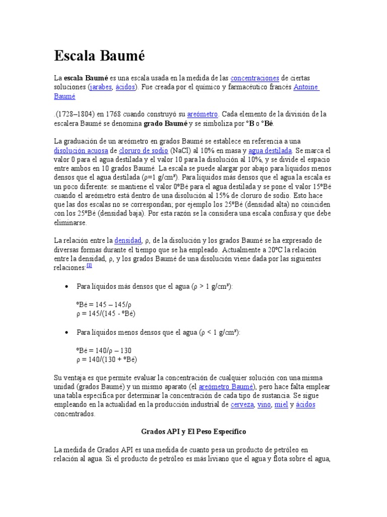 La escala Baumé es una escala usada en la medida de las concentraciones de ciertas