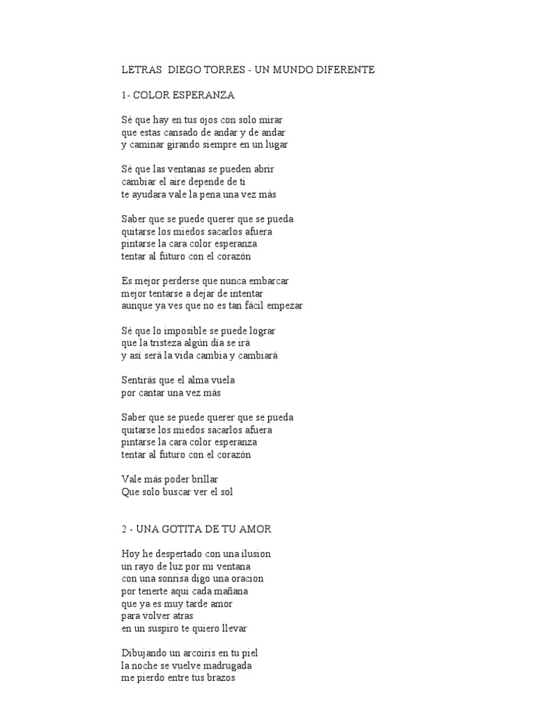 LETRAS DIEGO TORRES - UN MUNDO DIFERENTE