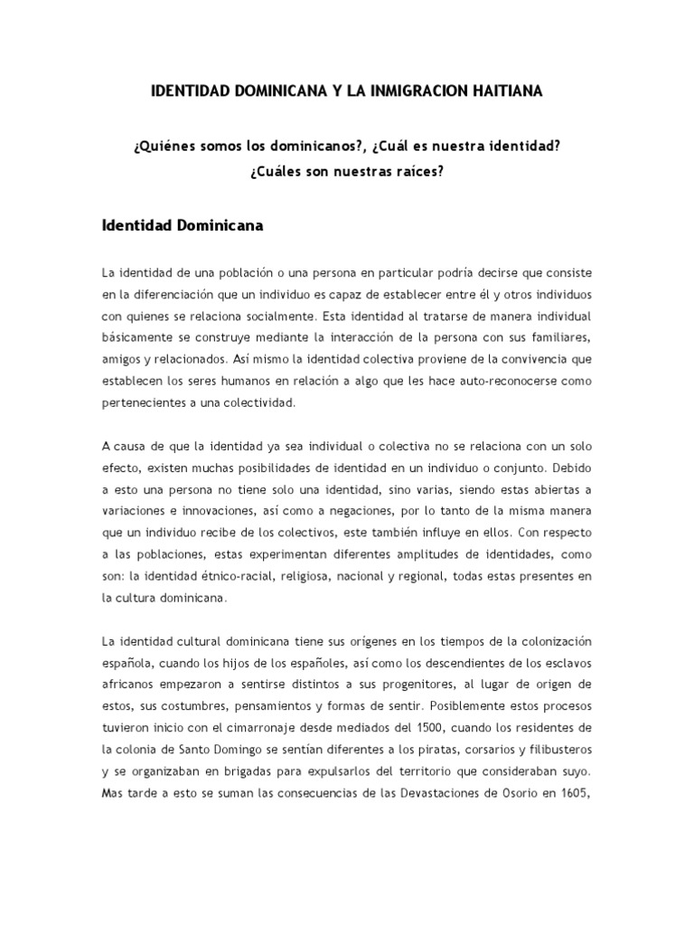IDENTIDAD DOMINICANA Y LA INMIGRACION HAITIANA