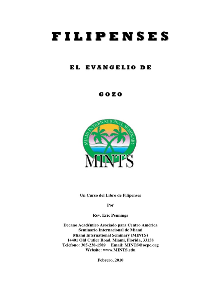 Curso de MINTS Filipenses: El Evangelio de Gozo Prof. Eric Pennings 2