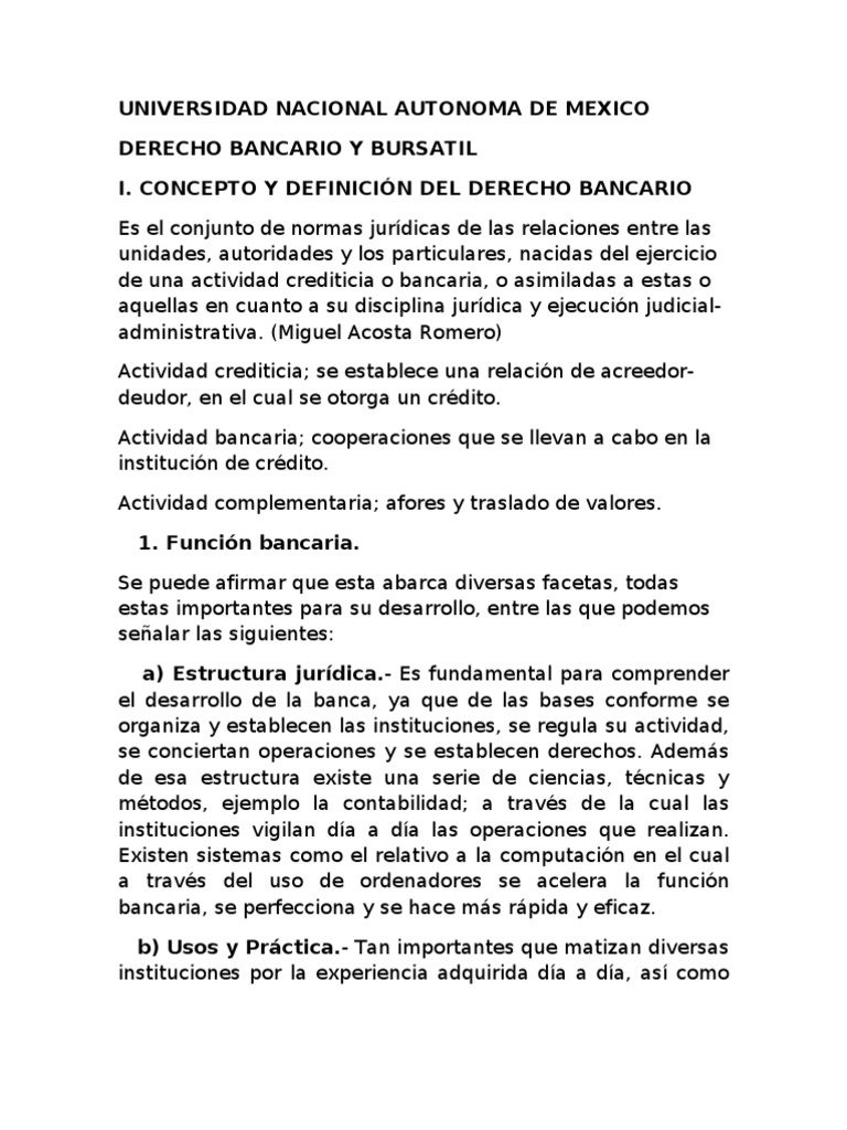 I. CONCEPTO Y DEFINICIÓN DEL DERECHO BANCARIO