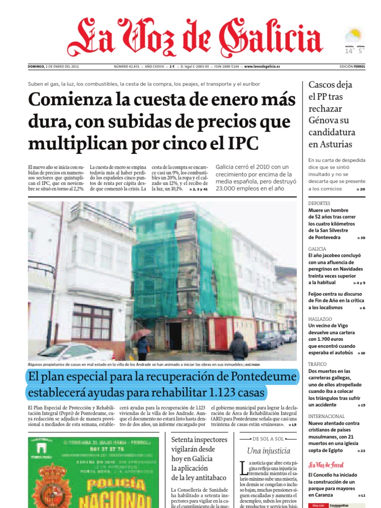 DOMINGO, 2 DE ENERO DEL 2011 NÚMERO 42.831 :: AÑO CXXVIII :: 2 € :: D. legal C-2683-03 :: ISSN 1888-5144 :: www.lavozdegalicia.es