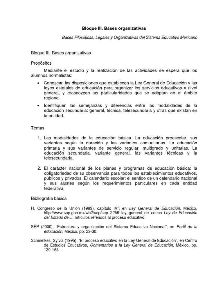 Bases Filosóficas, Legales y Organizativas del Sistema Educativo Mexicano