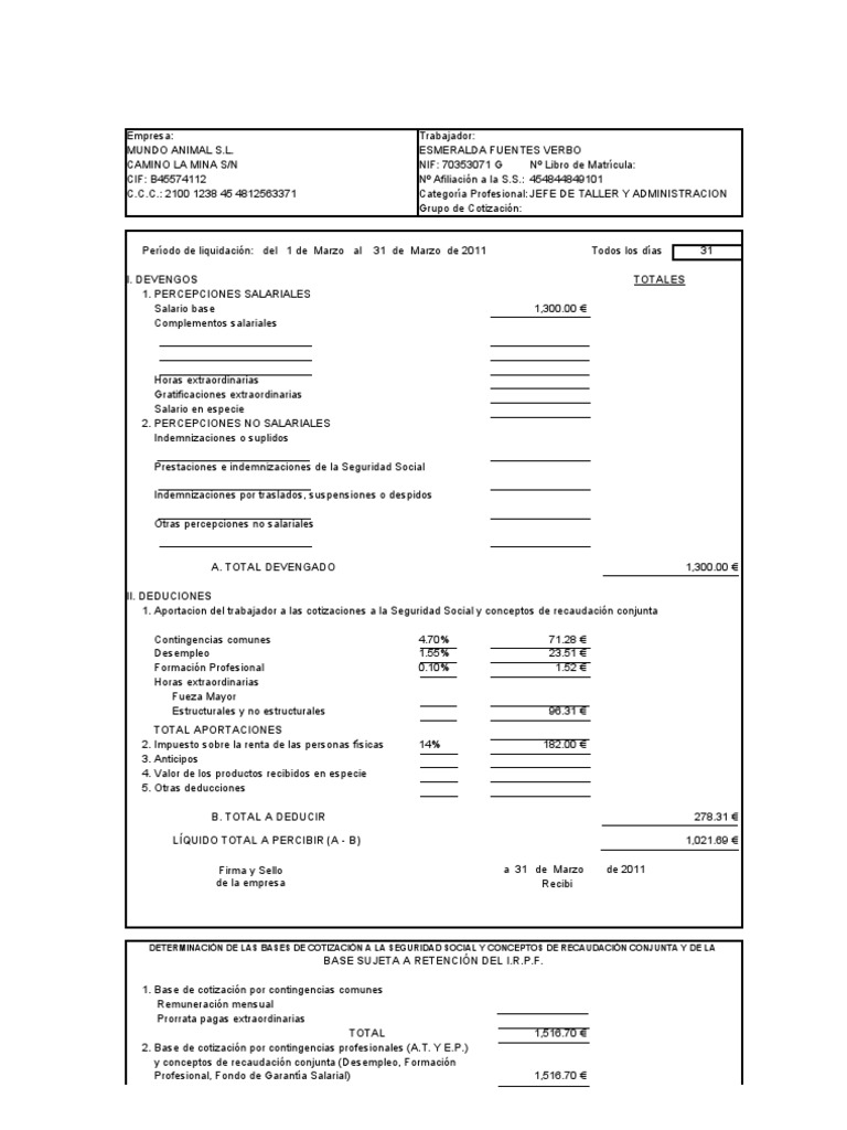 LÍQUIDO TOTAL A PERCIBIR (A - B) 1,021.69 €