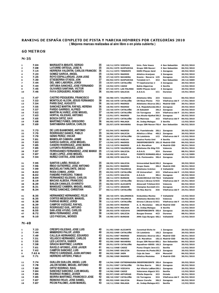 1 7.04 MARQUETA IBISATE, SERGIO 35 10/11/1974 VIZCAYA Univ. Pais Vasco 4 San Sebastián 20/02/2010