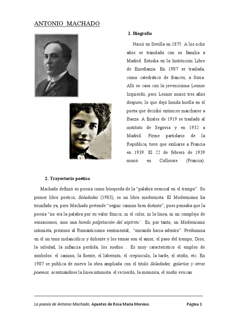 La poesía de Antonio Machado. Apuntes de Rosa María Moreno. Página 1