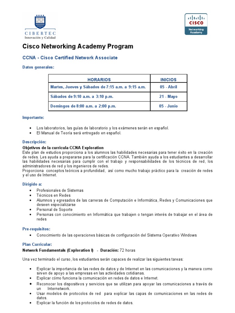 Network Fundamentals (Exploration I) - Duración: 72 horas