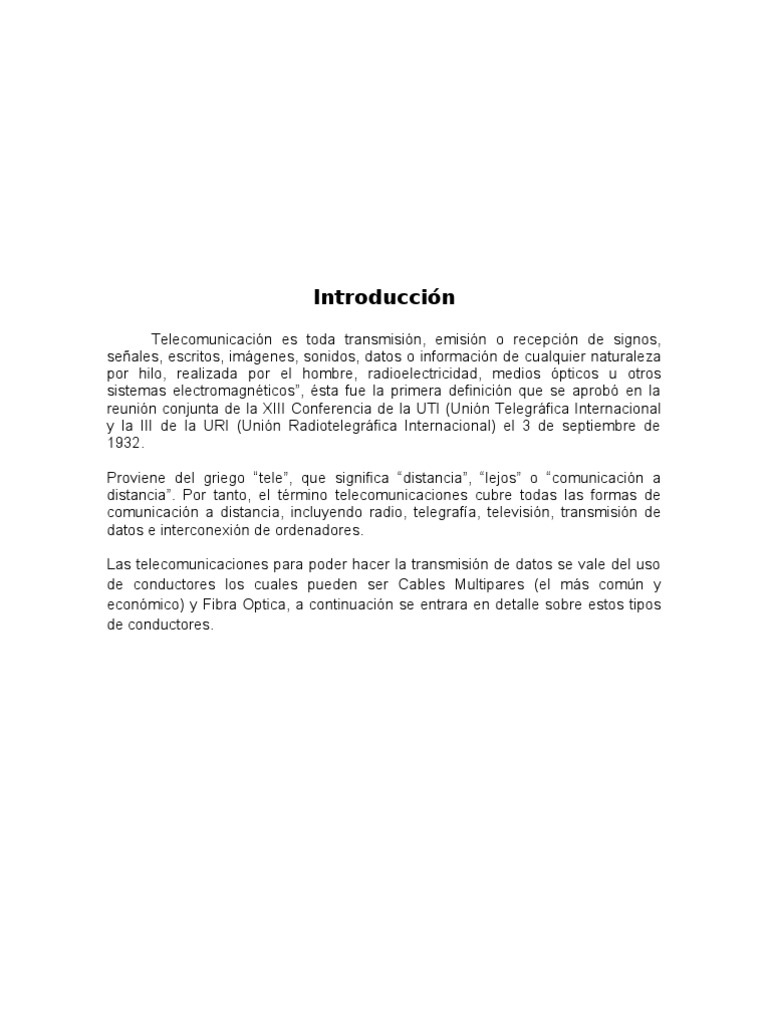 Las Telecomunicaciones como su nombre lo indica utilizan conductores