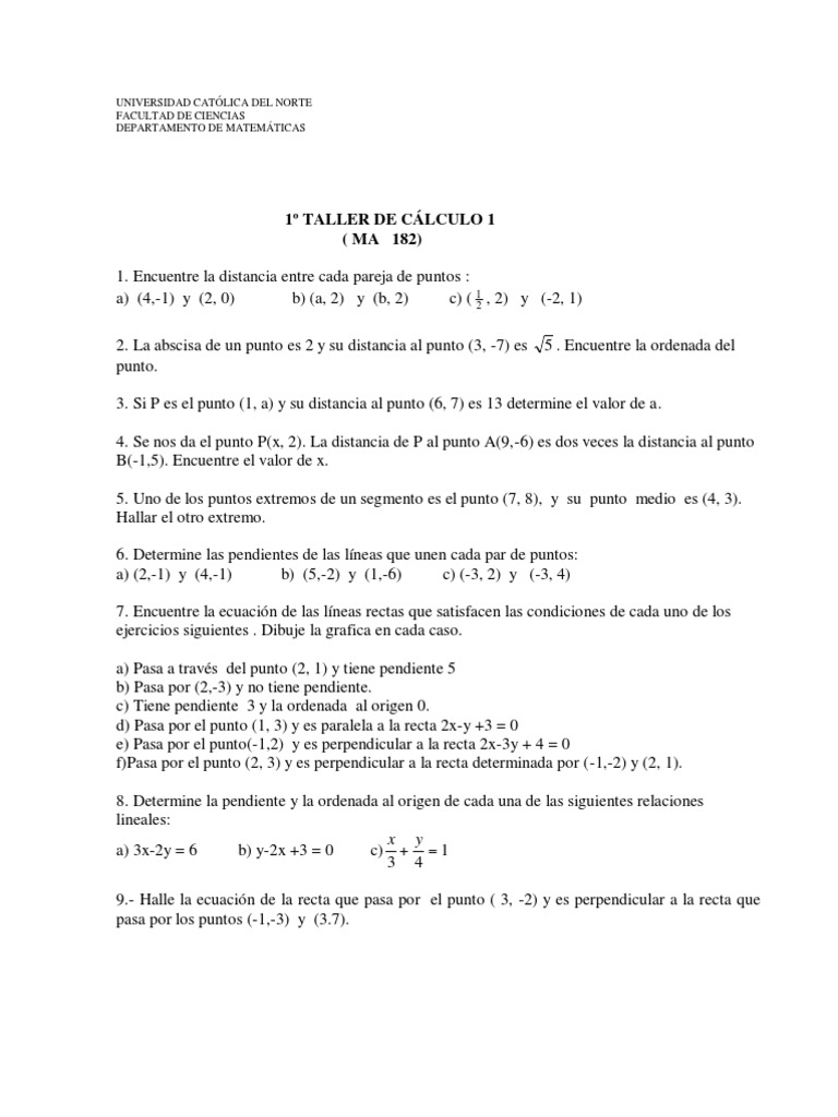 8. Determine la pendiente y la ordenada al origen de cada una de las siguientes relaciones