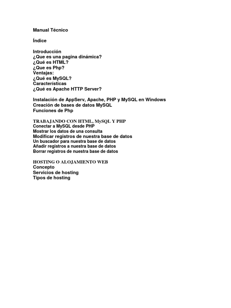 Posteriormente este Manual asume que tanto HTML, Php, Mysql, Apache