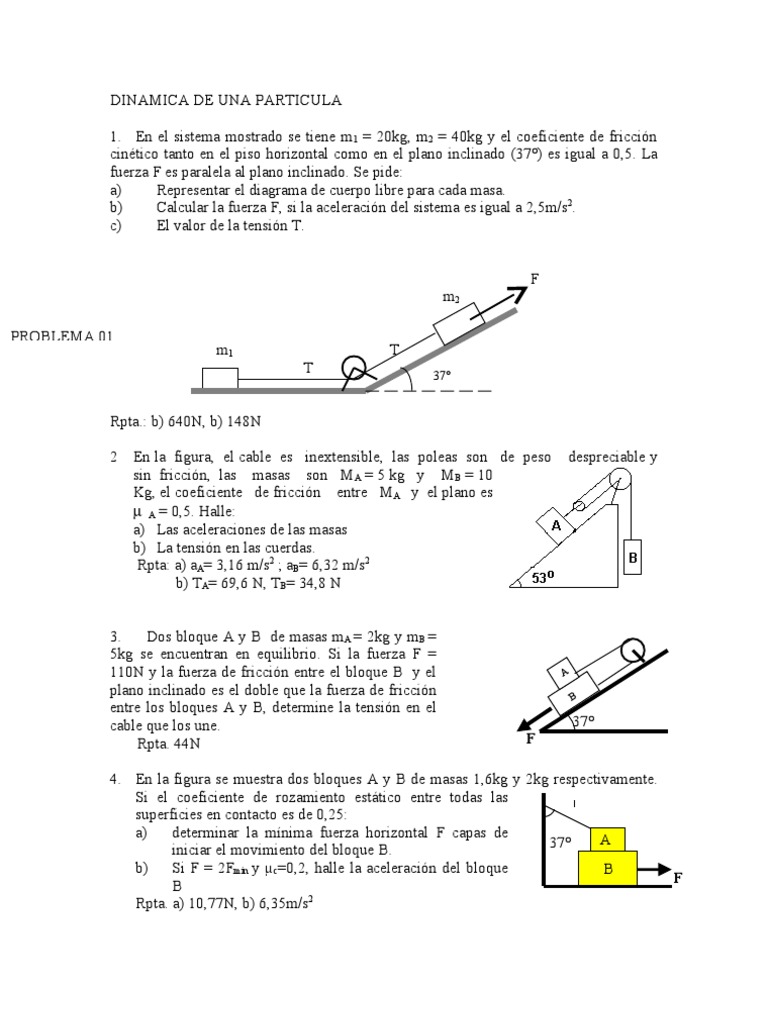 1. En el sistema mostrado se tiene m1 = 20kg, m2 = 40kg y el coeficiente de fricción