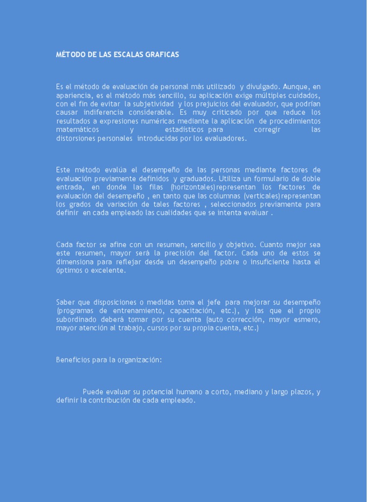 Este método evalúa el desempeño de las personas mediante factores de