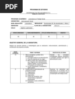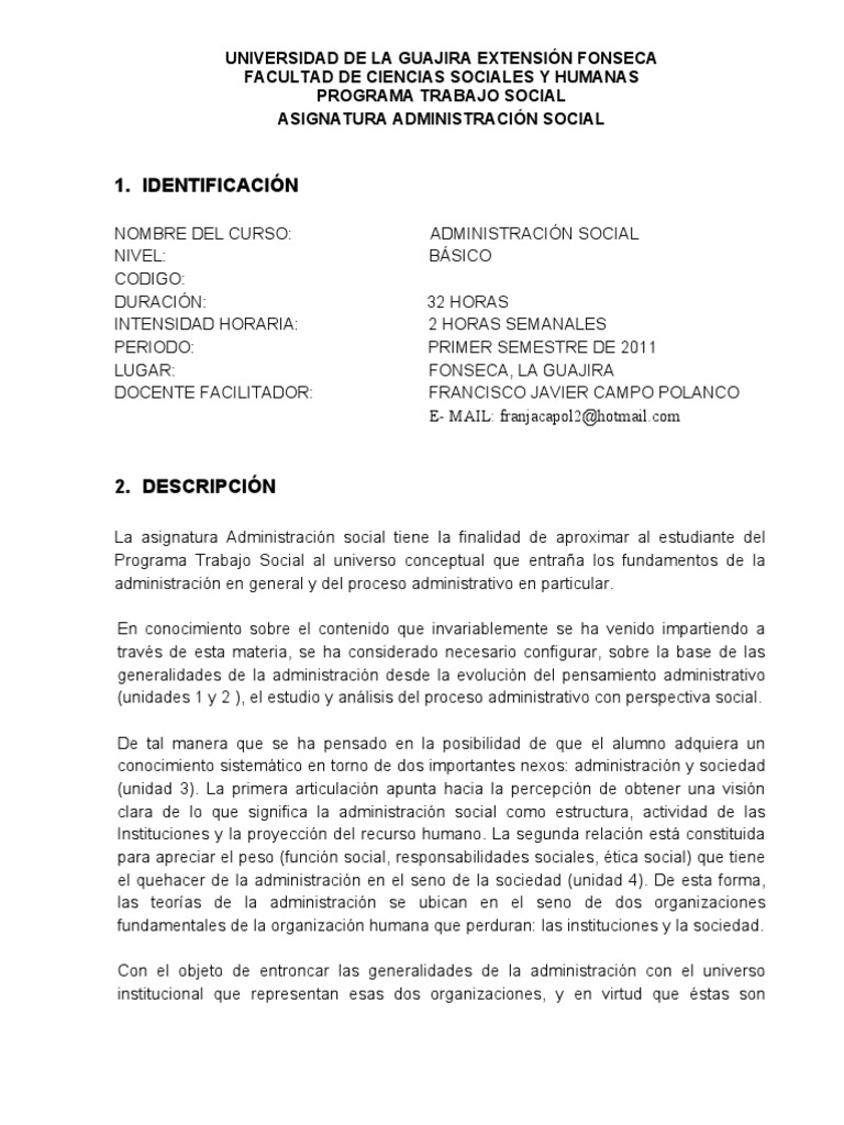 El Plan de Estudio de la Asignatura Administración Social, del programa Trabajo Social