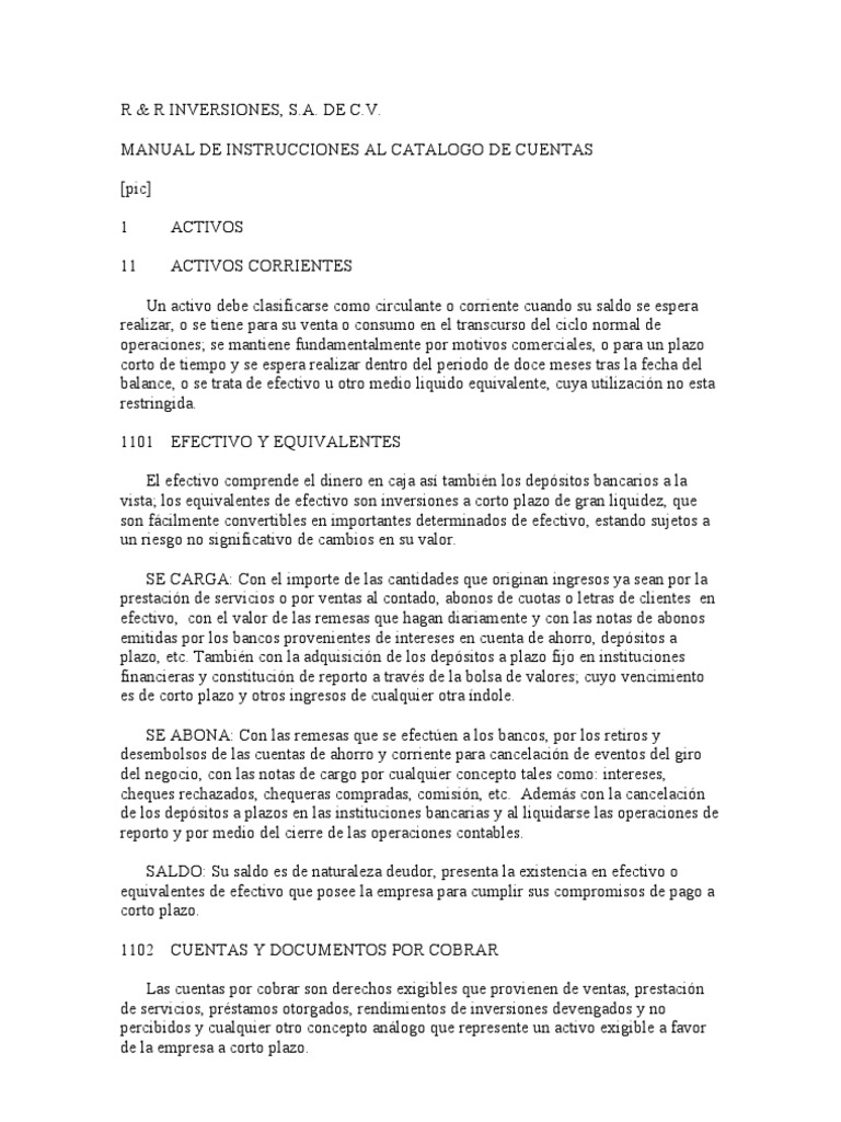 MANUAL DE INSTRUCCIONES AL CATALOGO DE CUENTAS
