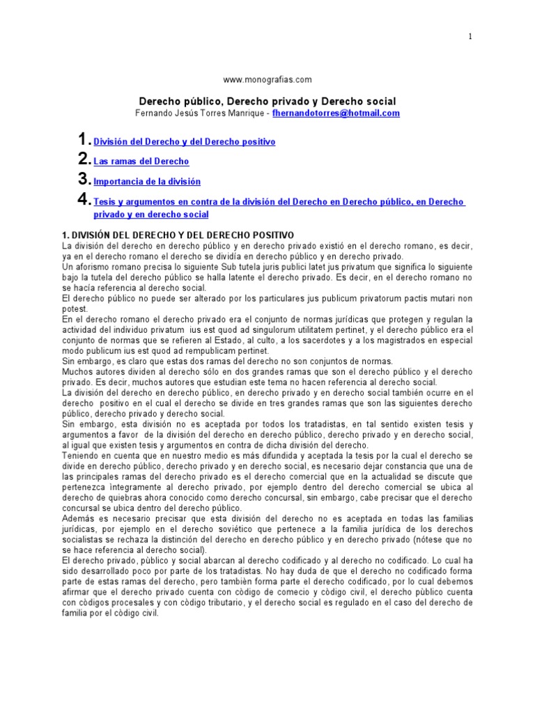 derecho privado, es decir, no se hace referencia al derecho social. Ya que el derecho público y el derecho