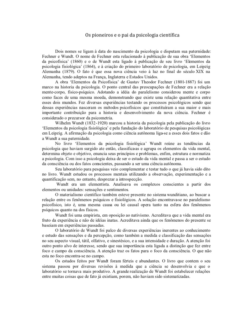 no livro. Wundt estudou os processos mentais utilizando a observação, experimentação e a