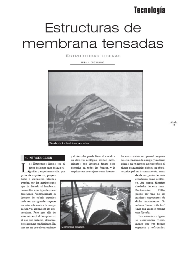 Un perfil tubular de acero 70-76 de 6m terios nos permiten afirmar que el ejemplos de estructuras de membrana