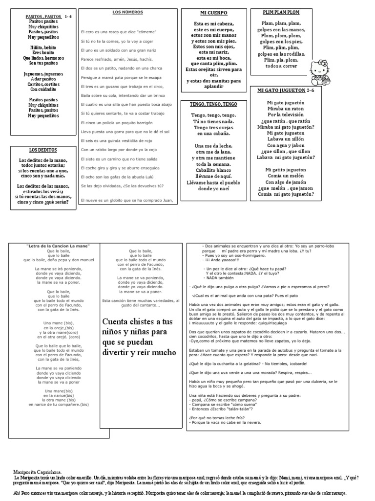 Muy pequeñ itos estos son mis manos Plom, plom, plom,