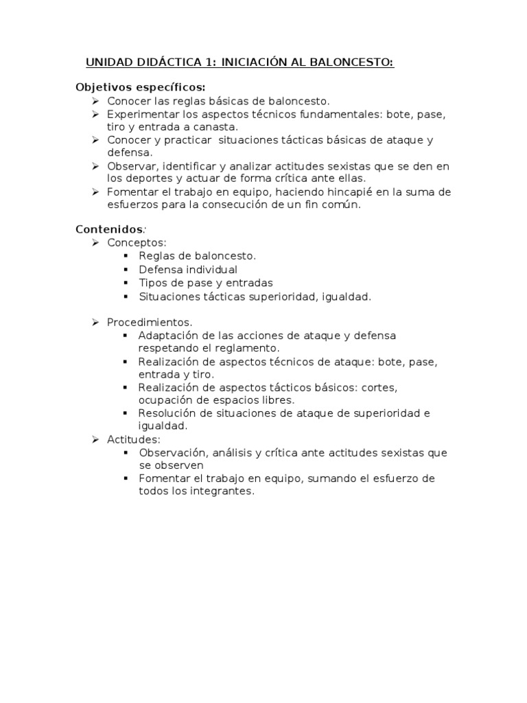UNIDAD DIDÁCTICA 1: INICIACIÓN AL BALONCESTO: