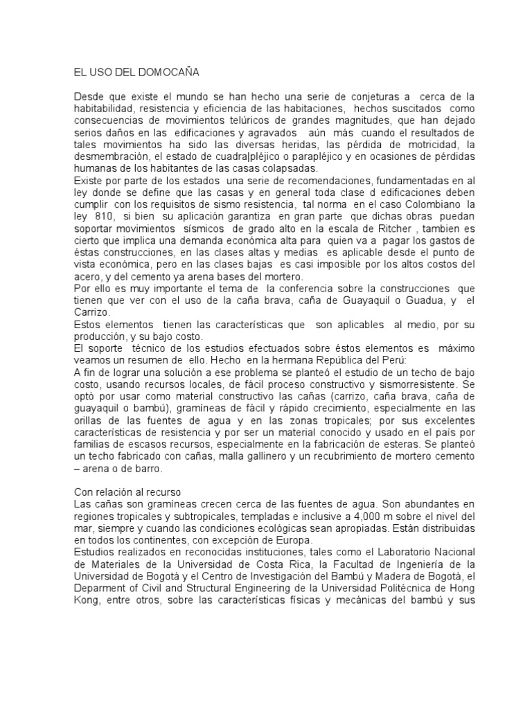 todo el estudio de los domocañas y las construcciones con materiales (caña brava,
