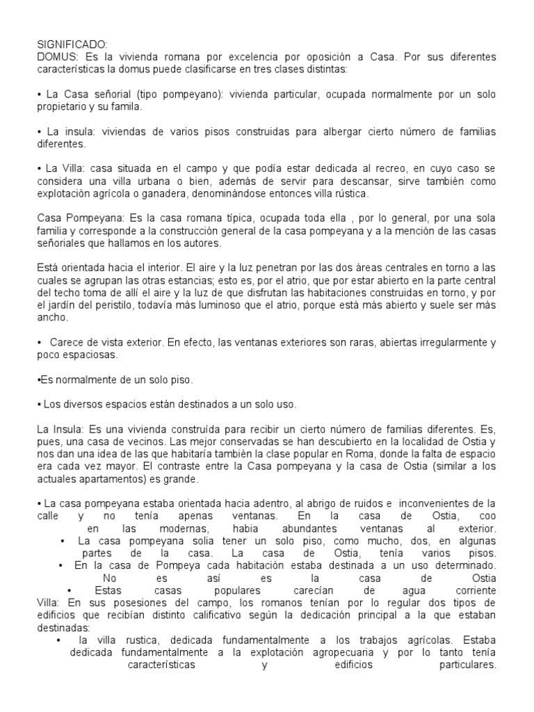 DOMUS: Es la vivienda romana por excelencia por oposición a Casa. Por sus diferentes
