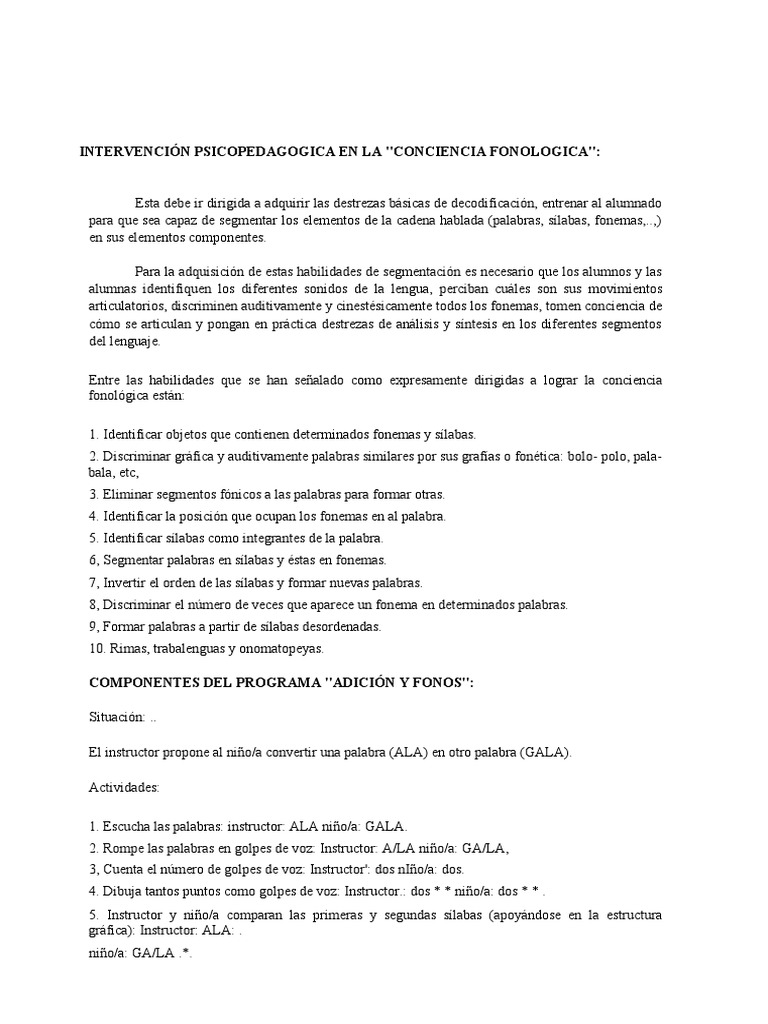 INTERVENCIÓN PSICOPEDAGOGICA EN LA "CONCIENCIA FONOLOGICA":