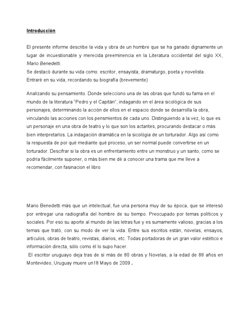 pronto, mejor.... El tema de Pedro y el Capitán lo pensé inicialmente como una