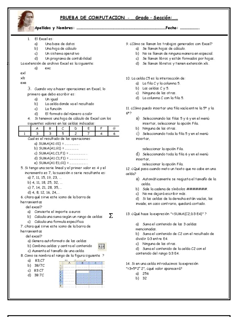 PRUEBA DE COMPUTACION - … Grado – Sección:…..