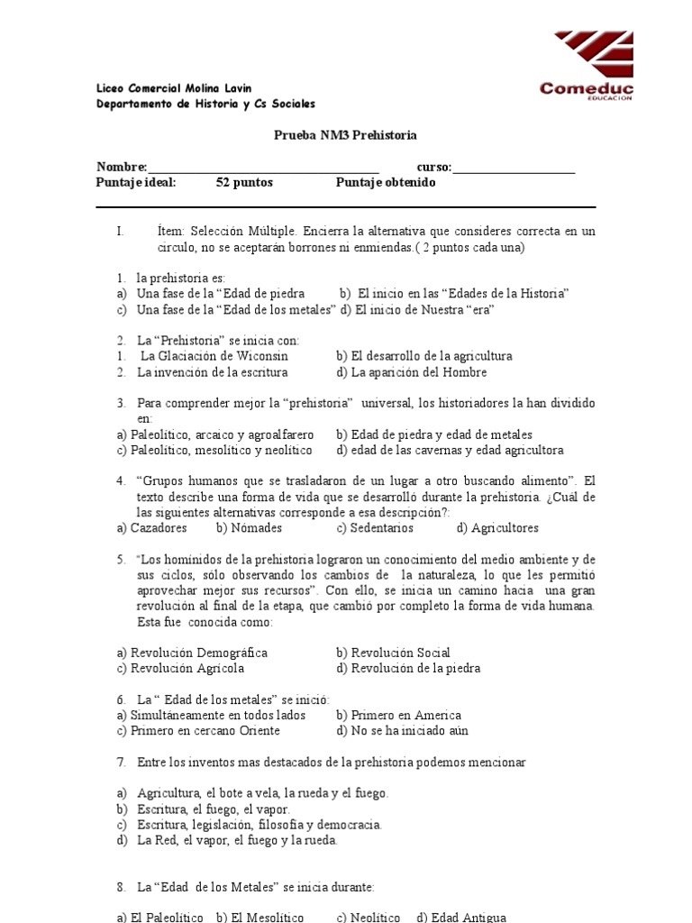 a) El Paleolítico b) El Mesolítico c) Neolítico d) Edad Antigua