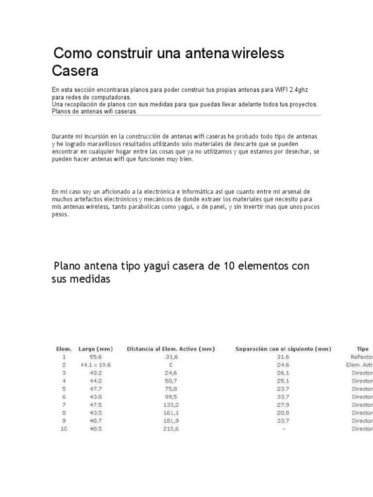 Plano antena tipo yagui casera de 10 elementos con