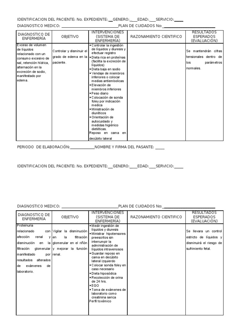 PLAN DE CUIDADOS No:_________