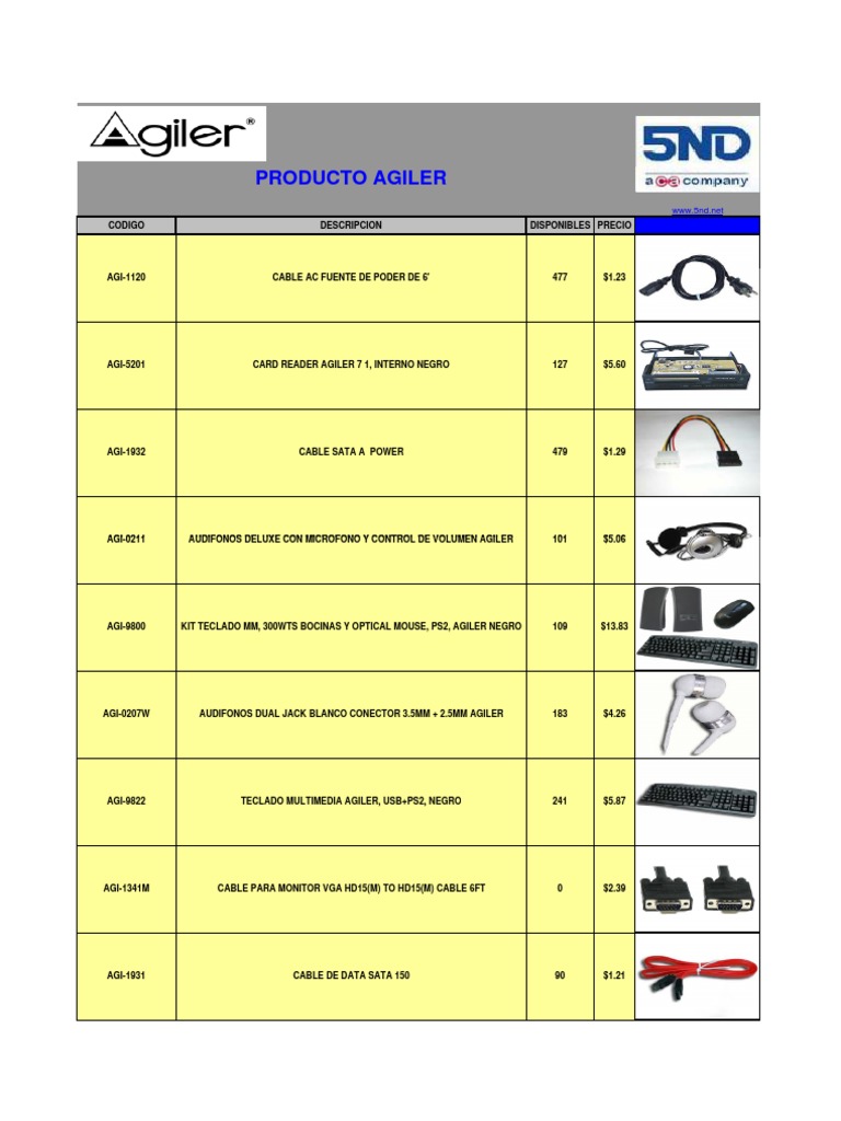 AGI-1305 CABLE USB 2.0 TIPO A/B 15 PIES 0 $1.79