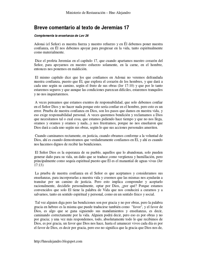 Breve comentario al texto de Jeremías 17