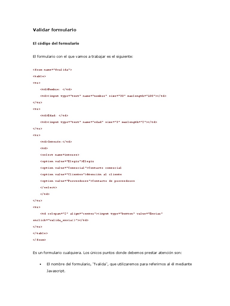 valida_envia(). Simplemente, para cada campo del formulario, comprueba que el valor