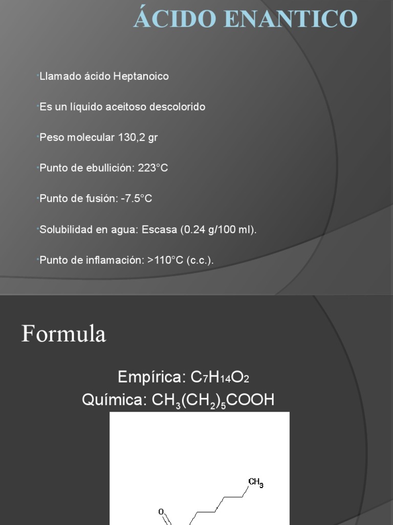 •Solubilidad en agua: Escasa (0.24 g/100 ml).