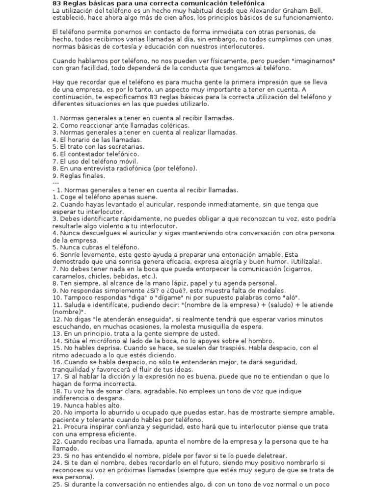 continuación, te especificamos 83 reglas básicas para la correcta utilización del teléfono y