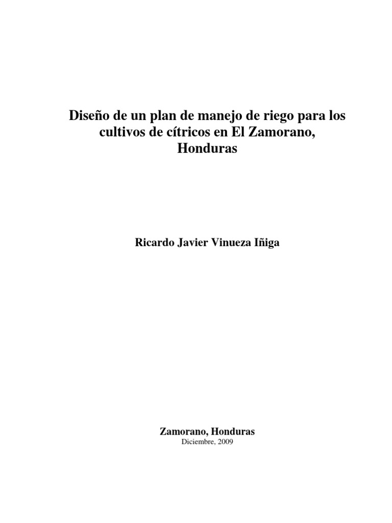 Vinueza, Ricardo. 2009. Diseño de un plan de manejo de riego para los cultivos de