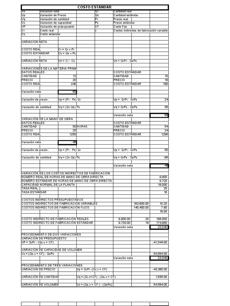 Vp Variación de Precio Qs Cantidad estándar