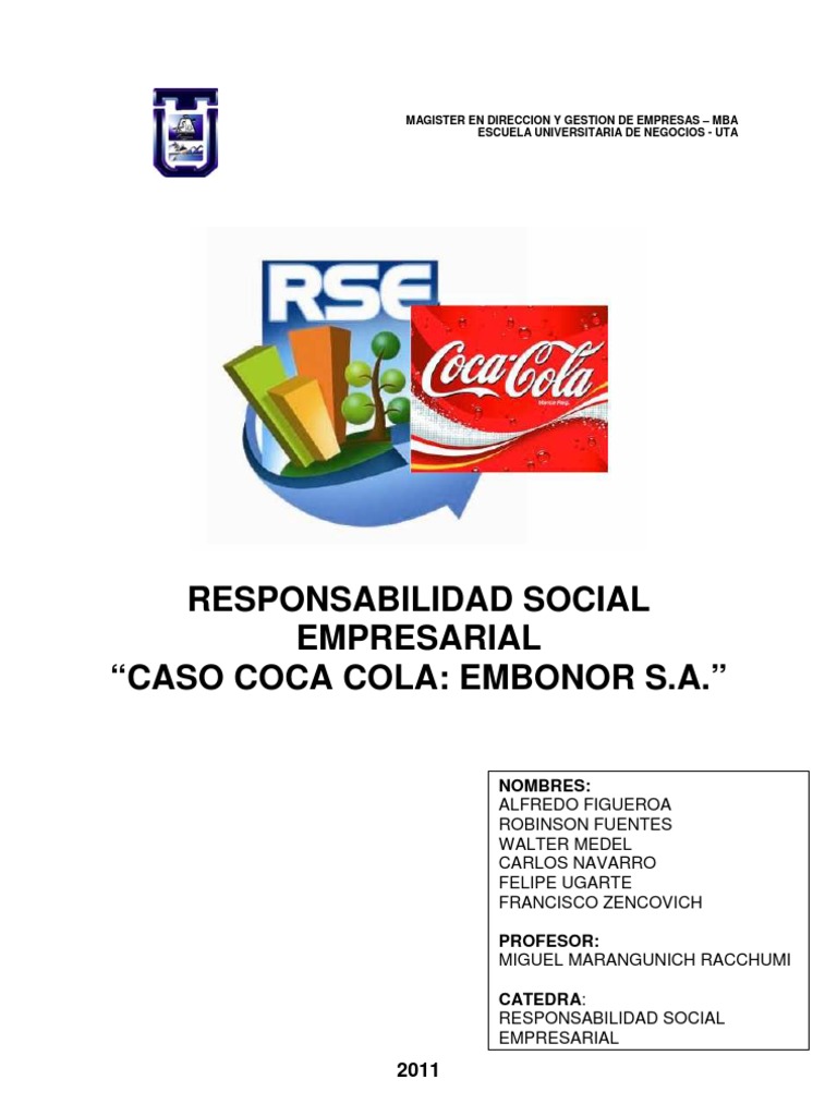 [Link] 9. Empresarial, A. (Diciembre de 2003). El ABC de la responsabilidad social empresarial en Chile y en el mundo. Recuperado el 21 de Mayo de 2011, de [Link] 10. Memoria Anual Coca-Cola Embonor S.A., 2010. Disponible en formato digital: [Link]