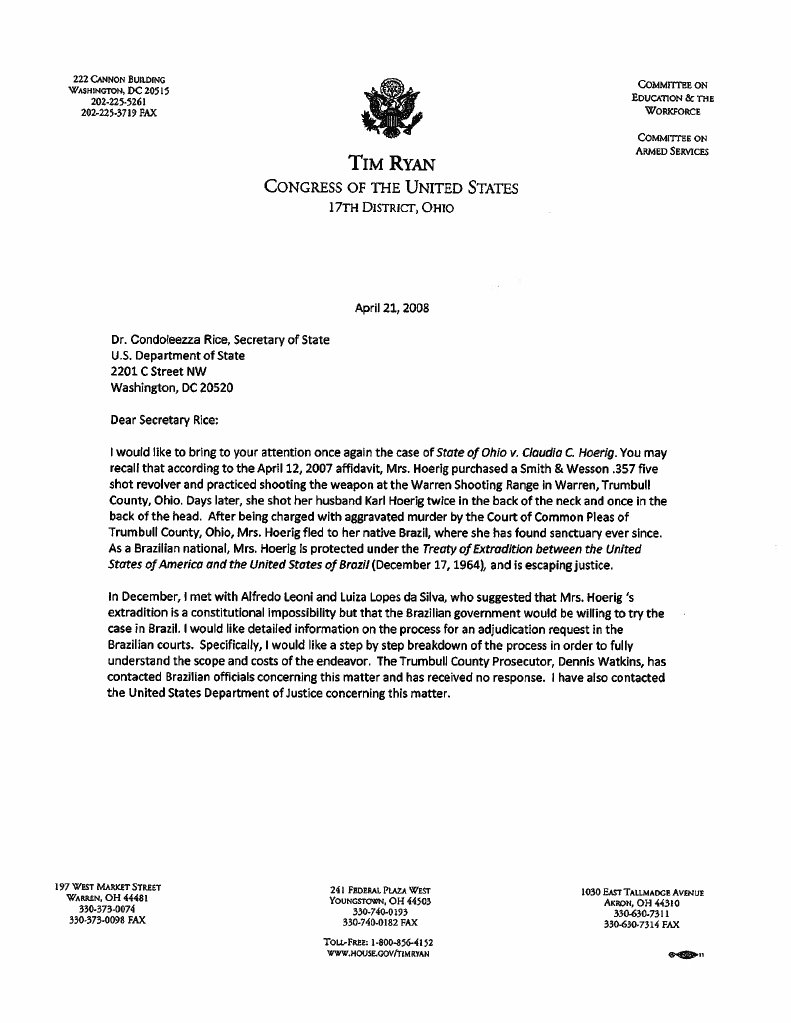 2008-04-21 Tim Ryan to U.S. Secretary of State Con...