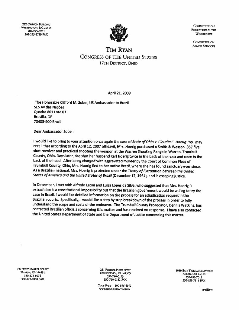 2008-04-21 Tim Ryan to U.S. Ambassador to Brazil C...