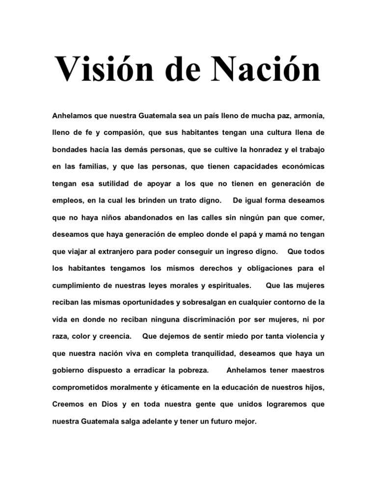 comprometidos moralmente y ticamente en la educacin de nuestros hijos, Creemos en Dios y en toda nuestra gente que unidos lograremos que nuestra Guatemala salga adelante y tener un futuro mejor.